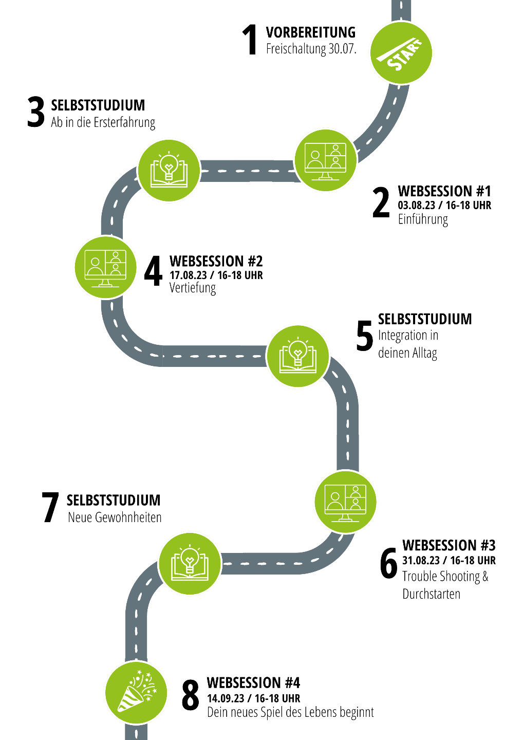 In gemeinsamen Live-Sessions, in Videokursen und durch die Unterstützung der Lerncoaches wirst du neue Mentaltechniken kennen lernen.